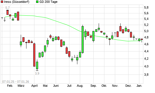 Mit dem Rücksetzer auf 4,68 EUR hat die Iress-Aktie am 06.01.2026 die 200-Tage-Linie nach unten gekreuzt.