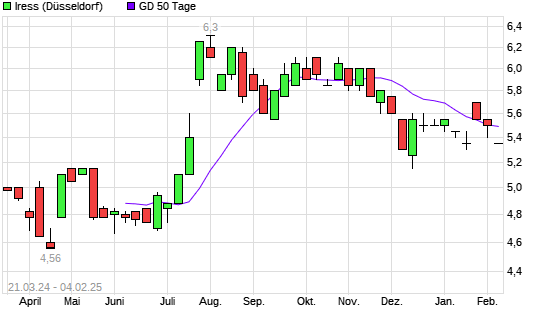 Mit dem Rücksetzer auf 5,35 EUR hat die Iress-Aktie am 03.02.2025 die 50-Tage-Linie nach unten gekreuzt.