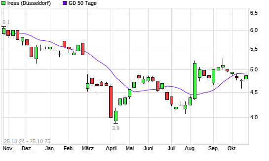 Mit dem Rücksetzer auf 4,88 EUR hat die Iress-Aktie am 24.10.2025 die 50-Tage-Linie nach unten gekreuzt.