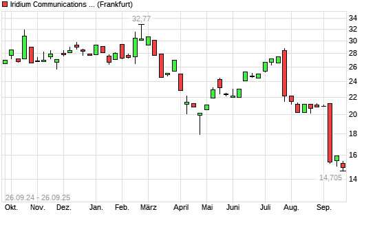 Mit dem Rücksetzer auf 14,70 EUR hat die Iridium Communications-Aktie (ISIN US46269C1027) am 25.09.2025 ein neues 5-Jahres-Tief erreicht und damit den Kurs vom 24.09.2025 eingestellt.