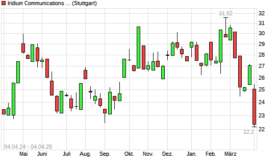 Mit dem Rücksetzer auf 22,88 EUR hat die Iridium Communications-Aktie (ISIN US46269C1027) am 03.04.2025 ein neues 6-Monats-Tief erreicht und damit den Kurs vom 14.03.2025 eingestellt.