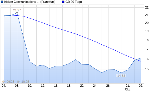 Mit dem Anstieg auf 16,10 EUR hat die Iridium Communications-Aktie am 03.10.2025 die 20-Tage-Linie nach oben gekreuzt.