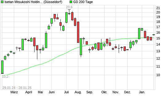 Mit dem Anstieg auf 15,70 EUR hat die Isetan Mitsukoshi Holdings-Aktie am 27.01.2025 die 200-Tage-Linie nach oben gekreuzt.