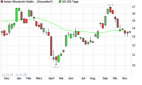 Mit dem Anstieg auf 13,70 EUR hat die Isetan Mitsukoshi Holdings-Aktie am 10.11.2025 die 200-Tage-Linie nach oben gekreuzt.
