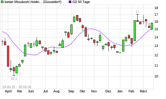Mit dem Anstieg auf 15,40 EUR hat die Isetan Mitsukoshi Holdings-Aktie am 17.03.2026 die 50-Tage-Linie nach oben gekreuzt.