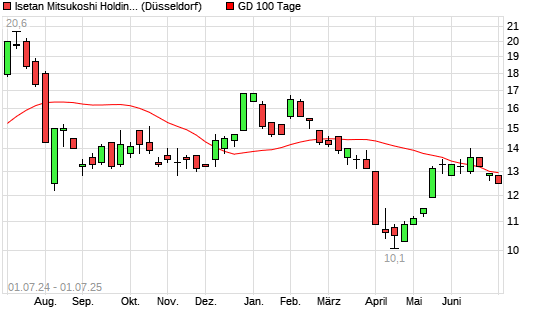 Mit dem Rücksetzer auf 12,80 EUR hat die Isetan Mitsukoshi Holdings-Aktie am 30.06.2025 die 100-Tage-Linie nach unten gekreuzt.