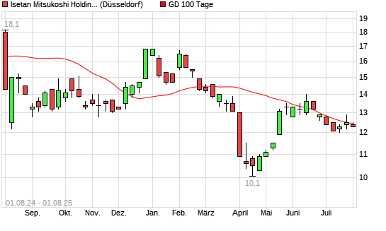 Mit dem Rücksetzer auf 12,30 EUR hat die Isetan Mitsukoshi Holdings-Aktie am 31.07.2025 die 100-Tage-Linie nach unten gekreuzt.