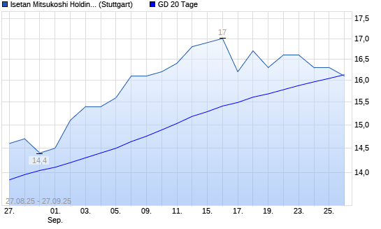 Mit dem Rücksetzer auf 16,00 EUR hat die Isetan Mitsukoshi Holdings-Aktie am 26.09.2025 die 20-Tage-Linie nach unten gekreuzt.