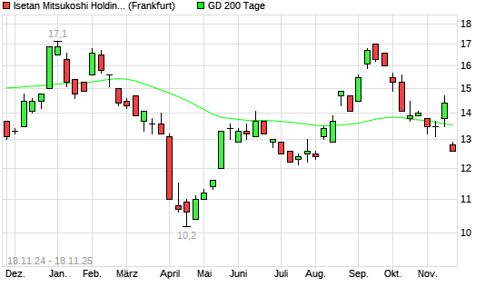 Mit dem Rücksetzer auf 12,90 EUR hat die Isetan Mitsukoshi Holdings-Aktie am 17.11.2025 die 200-Tage-Linie nach unten gekreuzt.
