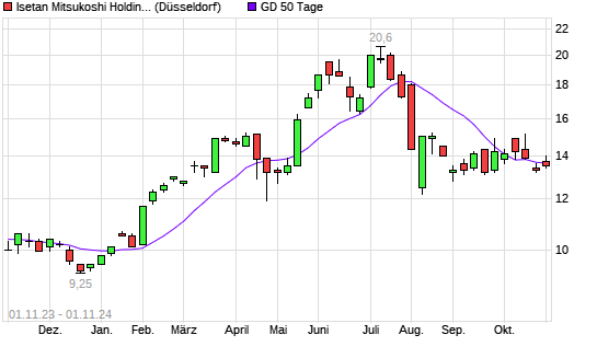 Mit dem Rücksetzer auf 13,50 EUR hat die Isetan Mitsukoshi Holdings-Aktie am 31.10.2024 die 50-Tage-Linie nach unten gekreuzt.