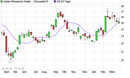Mit dem Rücksetzer auf 15,10 EUR hat die Isetan Mitsukoshi Holdings-Aktie am 19.03.2026 die 50-Tage-Linie nach unten gekreuzt.