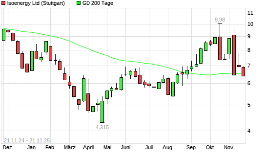 Mit dem Anstieg auf 6,57 EUR hat die Isoenergy-Aktie am 20.11.2025 die 200-Tage-Linie nach oben gekreuzt.