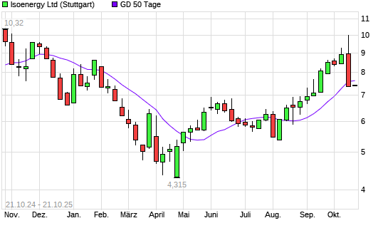 Mit dem Anstieg auf 7,83 EUR hat die Isoenergy-Aktie am 20.10.2025 die 50-Tage-Linie nach oben gekreuzt.