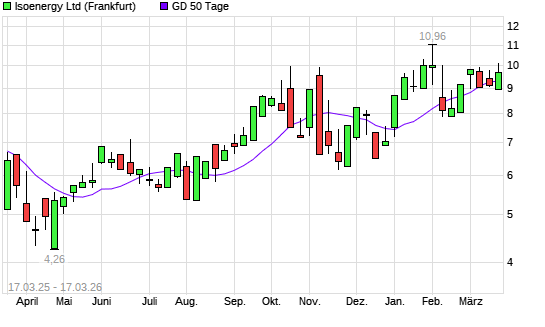Mit dem Anstieg auf 9,90 EUR hat die Isoenergy-Aktie am 16.03.2026 die 50-Tage-Linie nach oben gekreuzt.