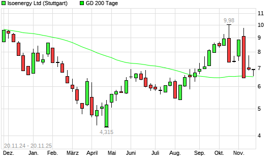 Mit dem Rücksetzer auf 6,33 EUR hat die Isoenergy-Aktie am 19.11.2025 die 200-Tage-Linie nach unten gekreuzt.