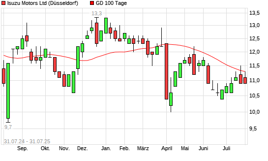 Mit dem Anstieg auf 11,40 EUR hat die Isuzu Motors-Aktie am 30.07.2025 die 100-Tage-Linie nach oben gekreuzt.