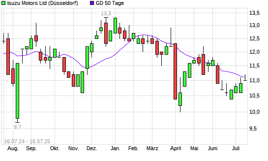 Mit dem Anstieg auf 11,30 EUR hat die Isuzu Motors-Aktie am 15.07.2025 die 50-Tage-Linie nach oben gekreuzt.