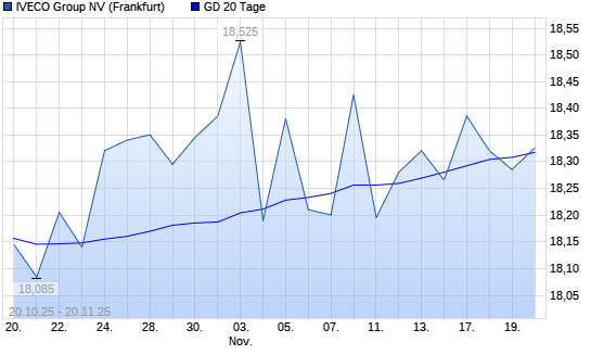 Mit dem Rücksetzer auf 18,29 EUR hat die Iveco Group-Aktie am 19.11.2025 die 20-Tage-Linie nach unten gekreuzt.