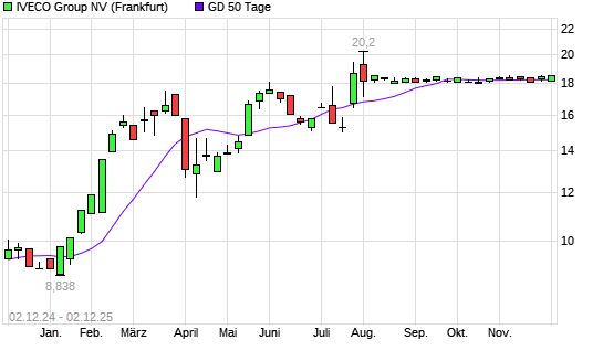 Mit dem Rücksetzer auf 18,15 EUR hat die Iveco Group-Aktie am 01.12.2025 die 50-Tage-Linie nach unten gekreuzt.
