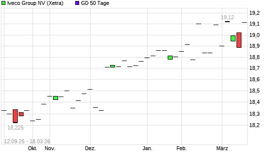 Mit dem Rücksetzer auf 18,79 EUR hat die Iveco Group-Aktie am 17.03.2026 die 50-Tage-Linie nach unten gekreuzt.
