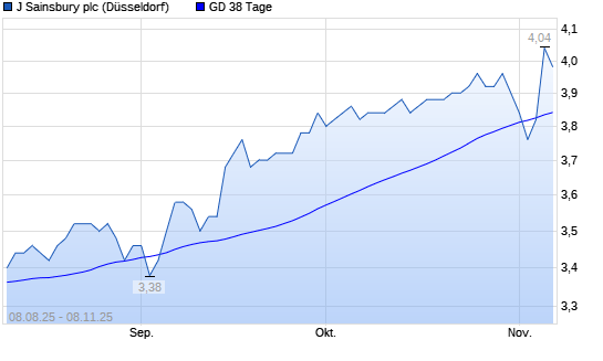 Mit dem Anstieg auf 4,02 EUR hat die J Sainsbury-Aktie am 07.11.2025 die 38-Tage-Linie nach oben gekreuzt.