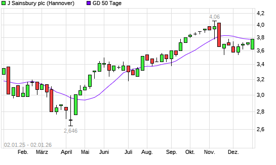 Mit dem Anstieg auf 3,74 EUR hat die J Sainsbury-Aktie am 01.01.2026 die 50-Tage-Linie nach oben gekreuzt.