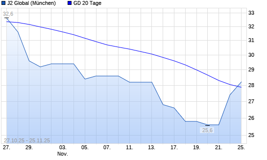 Mit dem Anstieg auf 28,20 EUR hat die J2 GLOBAL-Aktie am 24.11.2025 die 20-Tage-Linie nach oben gekreuzt.