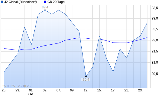 Mit dem Rücksetzer auf 32,00 EUR hat die J2 GLOBAL-Aktie am 24.10.2025 die 20-Tage-Linie nach unten gekreuzt.