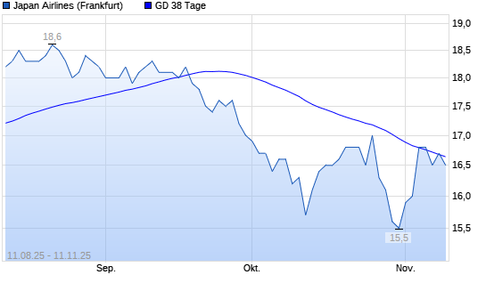 Mit dem Anstieg auf 16,70 EUR hat die JAPAN AIRLINES CO.-Aktie am 10.11.2025 die 38-Tage-Linie nach oben gekreuzt.