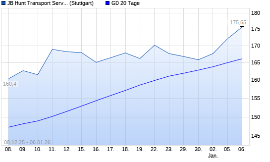 Mit dem Anstieg auf 171,20 EUR hat die JB Hunt Transport Services-Aktie am 05.01.2026 die 20-Tage-Linie nach oben gekreuzt.