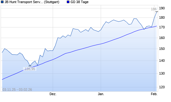 Mit dem Rücksetzer auf 168,25 EUR hat die JB Hunt Transport Services-Aktie am 02.02.2026 die 38-Tage-Linie nach unten gekreuzt.