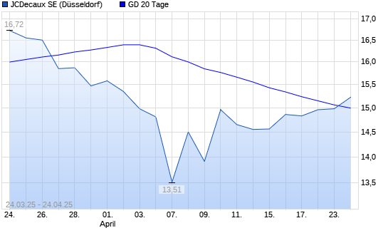 Mit dem Anstieg auf 15,23 EUR hat die JCDecaux-Aktie am 23.04.2025 die 20-Tage-Linie nach oben gekreuzt.