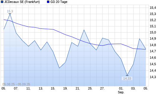 Mit dem Anstieg auf 14,90 EUR hat die JCDecaux-Aktie am 04.09.2025 die 20-Tage-Linie nach oben gekreuzt.