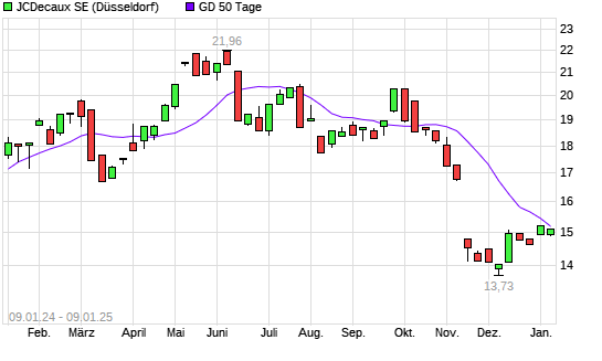 Mit dem Anstieg auf 15,16 EUR hat die JCDecaux-Aktie am 08.01.2025 die 50-Tage-Linie nach oben gekreuzt.