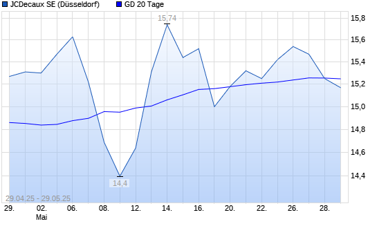 Mit dem Rücksetzer auf 15,27 EUR hat die JCDecaux-Aktie am 28.05.2025 die 20-Tage-Linie nach unten gekreuzt.