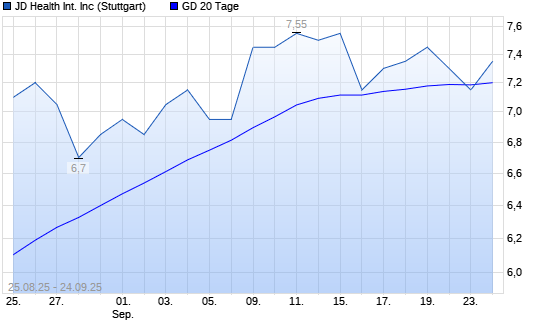 Mit dem Rücksetzer auf 7,15 EUR hat die JD Health-Aktie am 23.09.2025 die 20-Tage-Linie nach unten gekreuzt.