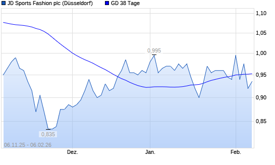 Mit dem Anstieg auf 0,95 EUR hat die JD Sports Fashion-Aktie am 05.02.2026 die 38-Tage-Linie nach oben gekreuzt.