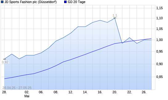 Mit dem Rücksetzer auf 0,97 EUR hat die JD Sports Fashion-Aktie am 26.05.2025 die 20-Tage-Linie nach unten gekreuzt.