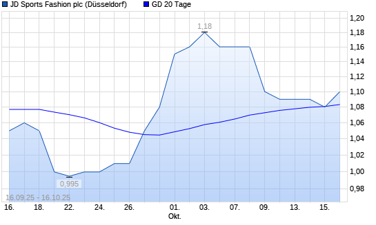 Mit dem Rücksetzer auf 1,08 EUR hat die JD Sports Fashion-Aktie am 15.10.2025 die 20-Tage-Linie nach unten gekreuzt.