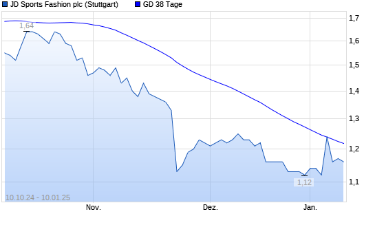 Mit dem Rücksetzer auf 1,15 EUR hat die JD Sports Fashion-Aktie am 09.01.2025 die 38-Tage-Linie nach unten gekreuzt.