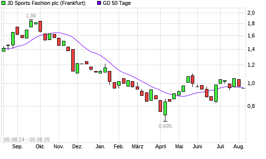 Mit dem Rücksetzer auf 0,95 EUR hat die JD Sports Fashion-Aktie am 04.08.2025 die 50-Tage-Linie nach unten gekreuzt.
