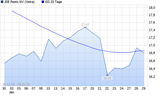 Mit dem Anstieg auf 16,93 EUR hat die JDE Peets-Aktie am 28.01.2025 die 20-Tage-Linie nach oben gekreuzt.