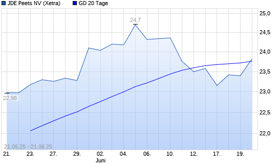 Mit dem Anstieg auf 23,82 EUR hat die JDE Peets-Aktie am 20.06.2025 die 20-Tage-Linie nach oben gekreuzt.