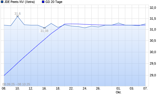 Mit dem Anstieg auf 31,26 EUR hat die JDE Peets-Aktie am 07.10.2025 die 20-Tage-Linie nach oben gekreuzt.
