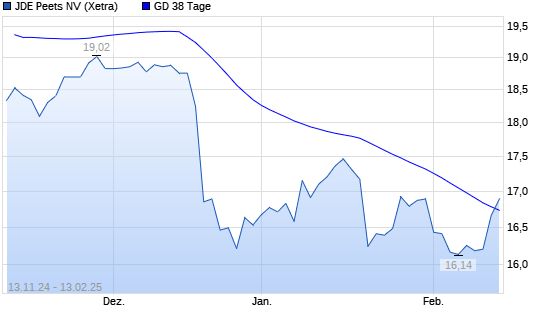Mit dem Anstieg auf 16,67 EUR hat die JDE Peets-Aktie am 12.02.2025 die 38-Tage-Linie nach oben gekreuzt.