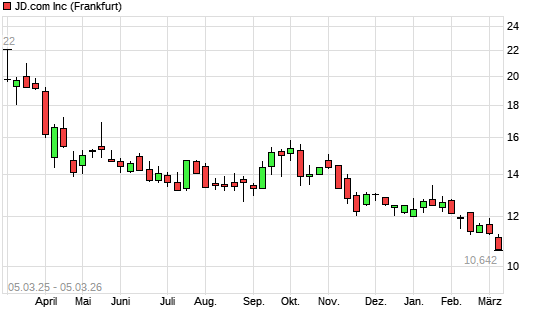 Mit dem Rücksetzer auf 11,06 EUR hat die JD.com A-Aktie (ISIN KYG8208B1014) am 04.03.2026 ein neues 12-Monats-Tief erreicht und damit den Kurs vom 03.03.2026 eingestellt.