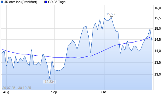 Mit dem Anstieg auf 14,75 EUR hat die JD.com A-Aktie am 29.10.2025 die 38-Tage-Linie nach oben gekreuzt.