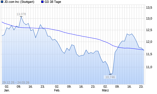 Mit dem Rücksetzer auf 11,63 EUR hat die JD.com A-Aktie am 23.03.2026 die 38-Tage-Linie nach unten gekreuzt.