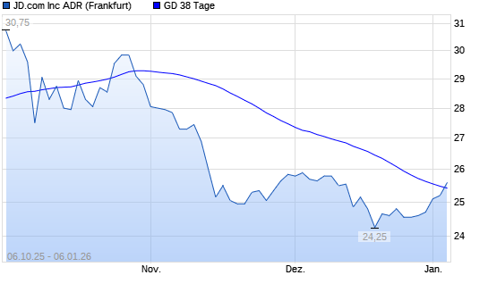 Mit dem Anstieg auf 25,20 EUR hat die JD.com-Aktie am 05.01.2026 die 38-Tage-Linie nach oben gekreuzt.