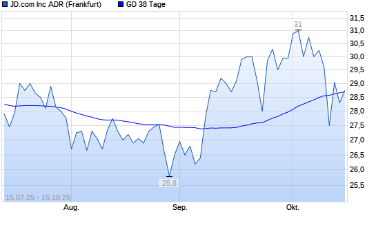 Mit dem Rücksetzer auf 28,30 EUR hat die JD.com-Aktie am 14.10.2025 die 38-Tage-Linie nach unten gekreuzt.